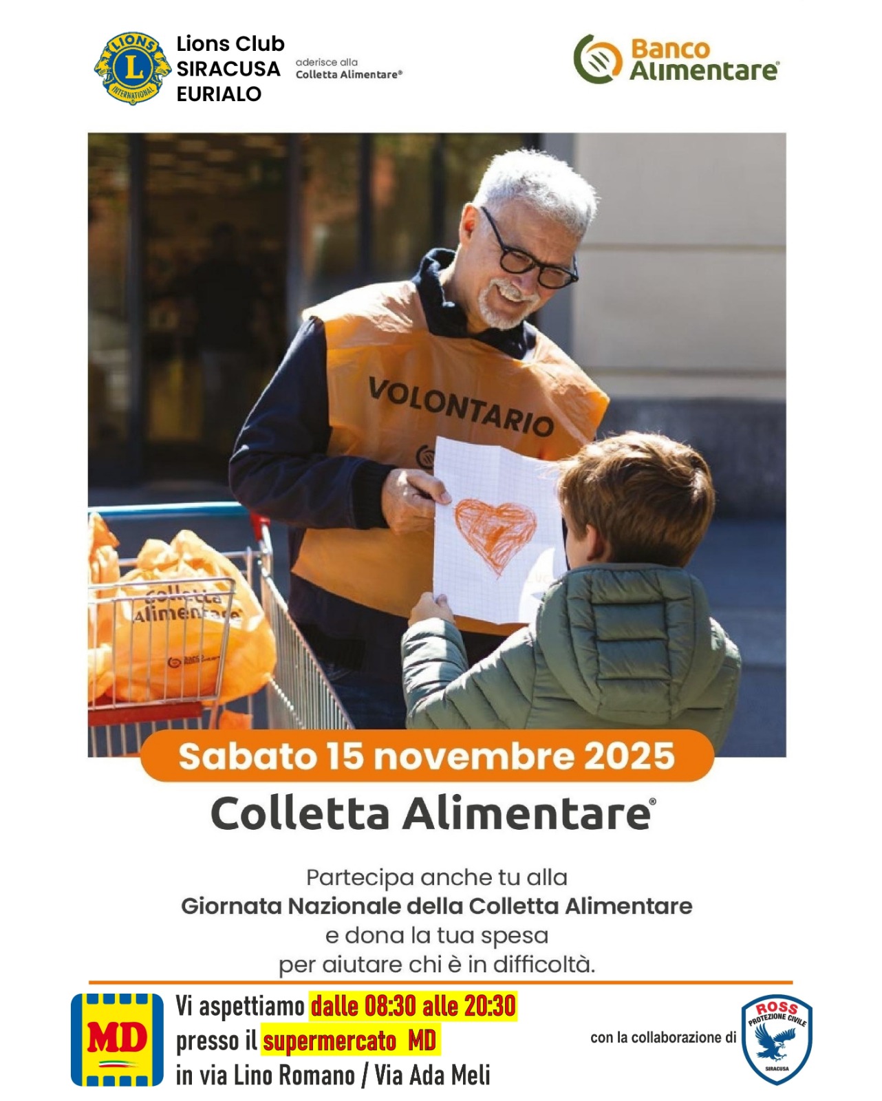 La 29ma edizione della Giornata Nazionale della Colletta Alimentare, avuta luogo il 15 novembre 2025 in tutta Italia, ha visto ancora una volta in prima linea il Lions Club Siracusa Eurialo.